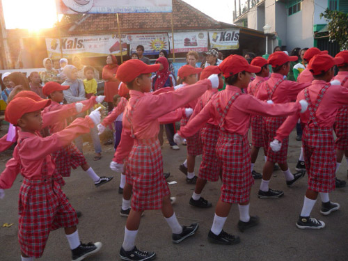 In Jasinga wordt een of meerdere keren per jaar een wandelmars gehouden waar alle scholen uit alle 16 desas van Jasinga aan mee doen: de Grag Jalan. Schooltje SD-04- doet natuurlijk ook mee. De status van de school groeit als er prijzen mee gewonnen worden. Het gaat er om wie de mooiste uniformen heeft, en wie het mooist en meest disciplinair de passen loopt op de muziek. Wij hebben in de kampong de schoolkinderen de militaristisch aandoende wandelpassen dagenlang zien oefenen voorafgaand aan de wandelmars.