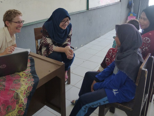 Pa Dwi Nurkhollis, onze contactpersoon van het middelbaar onderwijs in Jasinga, is er opnieuw in geslaagd om 2 dagen te organiseren waarop wij zo’n 70-tal middelbare scholieren en hun ouders ontmoet hebben. Evenals voorgaande jaren was de opkomst hoog. Een flink aantal scholieren en ouders heeft Els ook nog even persoonlijk kunnen spreken . In die interviews is het hoopvol om te horen dat scholieren dromen over hun toekomst en dat bijna alle scholieren na hun middelbare school verder zouden willen studeren. De ouders spreken allemaal hun nadrukkelijke dankbaarheid uit naar de sponsor in Nederland. Dit jaar kwam zelfs een speciale afvaardiging van de ouders van geslaagde leerlingen een geschenk overhandigen op het logeeradres van Arnold en Els. Ze hadden geld ingezameld om een ‘tros gula aren’ aan te bieden van maar liefst 12 kilo in gewicht ! Gula aren is een suiker product uit de streek. Hier enkele foto’s van de bijeenkomsten met scholieren en ouders.